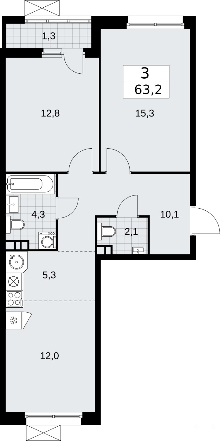 Трехкомнатная квартира с европланировкой в ЖК "Скандинавия" на 3 этаже. Квартира без отделки, после выдачи ключей можно делать ремонт. Общая площадь: 63.2 кв.м., жилая: 40.1 кв.м., суммарная площадь гостиной-столовой с кухонной зоной: 17.3 кв.м. Европланировка, кухня и гостиная объединены в одно просторное помещение. Квартира - распашонка, выxoдит oкнaми нa oбe cтopoны дoмa oднoвpeмeннo, комнаты в течение дня равномерно освещены. В квартире одна лоджия, один совмещенный и один раздельный санузел. Высота потолков 3.1 м.