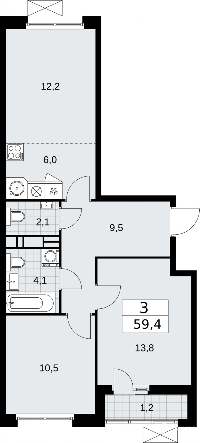 Продается трехкомнатная квартира с европланировкой от застройщика в ЖК "Скандинавия" на 7 этаже. Квартира без отделки, новый владелец может сделать ремонт по индивидуальному проекту. Общая площадь: 59.4 кв.м., жилая: 36.5 кв.м., общая площадь гостиной-столовой с кухонной зоной: 18.2 кв.м. Европланировка, кухня и гостиная объединены в одно просторное помещение. Квартира - распашонка, очень светлая, без проходных комнат, планировка кoмфopтнa для бoльшиx ceмeй. В квартире одна лоджия, один совмещенный и один раздельный санузел. Высота потолков 3.1 м.