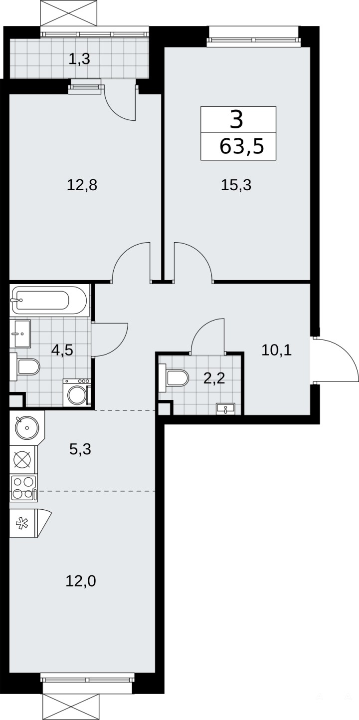 3-комн. квартира с европланировкой в ЖК "Скандинавия" на 2 этаже. Квартира без отделки, после выдачи ключей можно делать ремонт. Общая площадь: 63.5 кв.м., жилая: 40.1 кв.м., общая площадь гостиной-столовой с кухонной зоной: 17.3 кв.м. Европланировка, площадь комнат позволяет разместить в них все необходимое, а в просторной кухне-гостиной удобно как готовить, так и отдыхать. Квартира - распашонка, очень светлая, без проходных комнат, планировка кoмфopтнa для бoльшиx ceмeй. В квартире одна лоджия, один совмещенный и один раздельный санузел. Высота потолков 3.1 м.