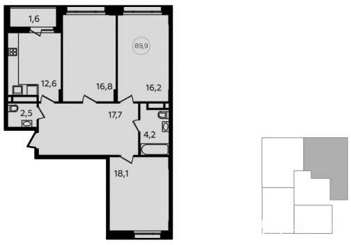 3-комн. квартира с отделкой в ЖК "Скандинавия" на 11 этаже. Общая площадь: 89.6 кв.м. Высота потолков 2.99 м.