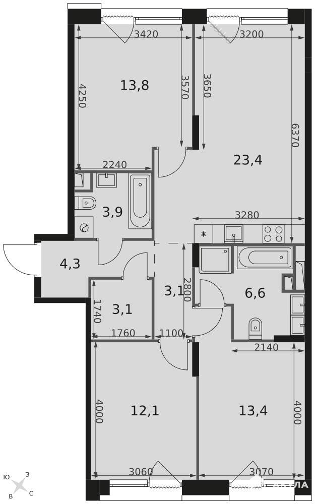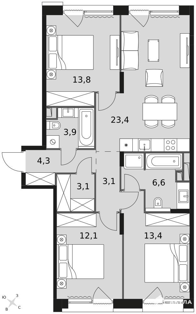 Продается 3-комн. квартира, площадью 84.3 м2.