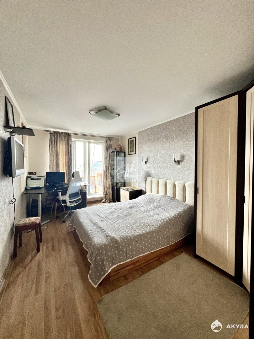Квартира расположена на 11-м этаже, благодаря этому из окон квартиры открываются прекрасные виды на достопримечательности Москвы. Общая площадь квартиры составляет 63, 2 кв. м без учета двух балконов, жилая — 44 кв. м. Площадь кухни — 7, 1 кв. м. Комнаты изолированные, их площади составляют 12, 9 кв. м, 14, 8 кв. м и 16, 3 кв. м. В квартире есть два балкона, что создаёт дополнительные возможности для отдыха и хранения. Окна выходят на две стороны. Хорошее состояние. Кухня остается покупателю.