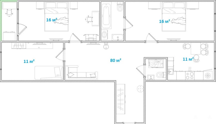 УНИКАЛЬНАЯ ПЛАНИРОВКА (80 м²):