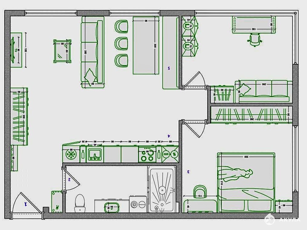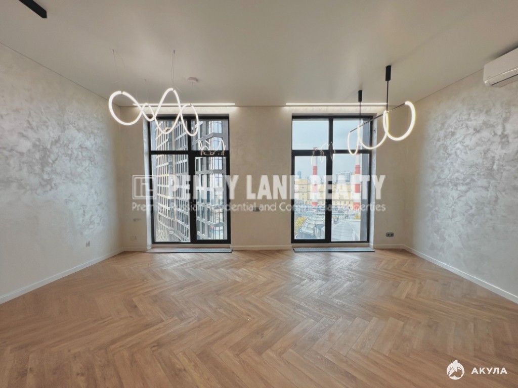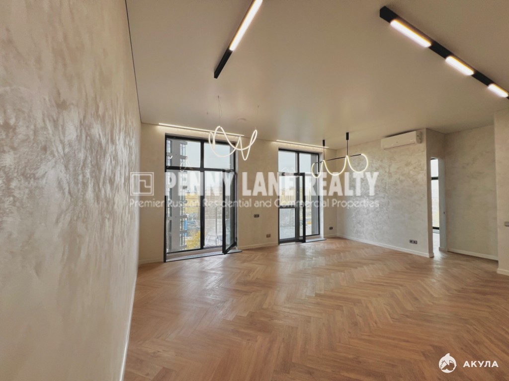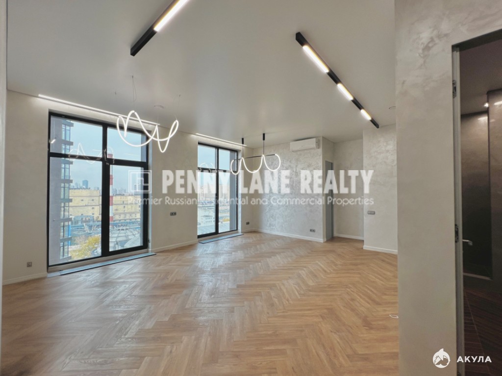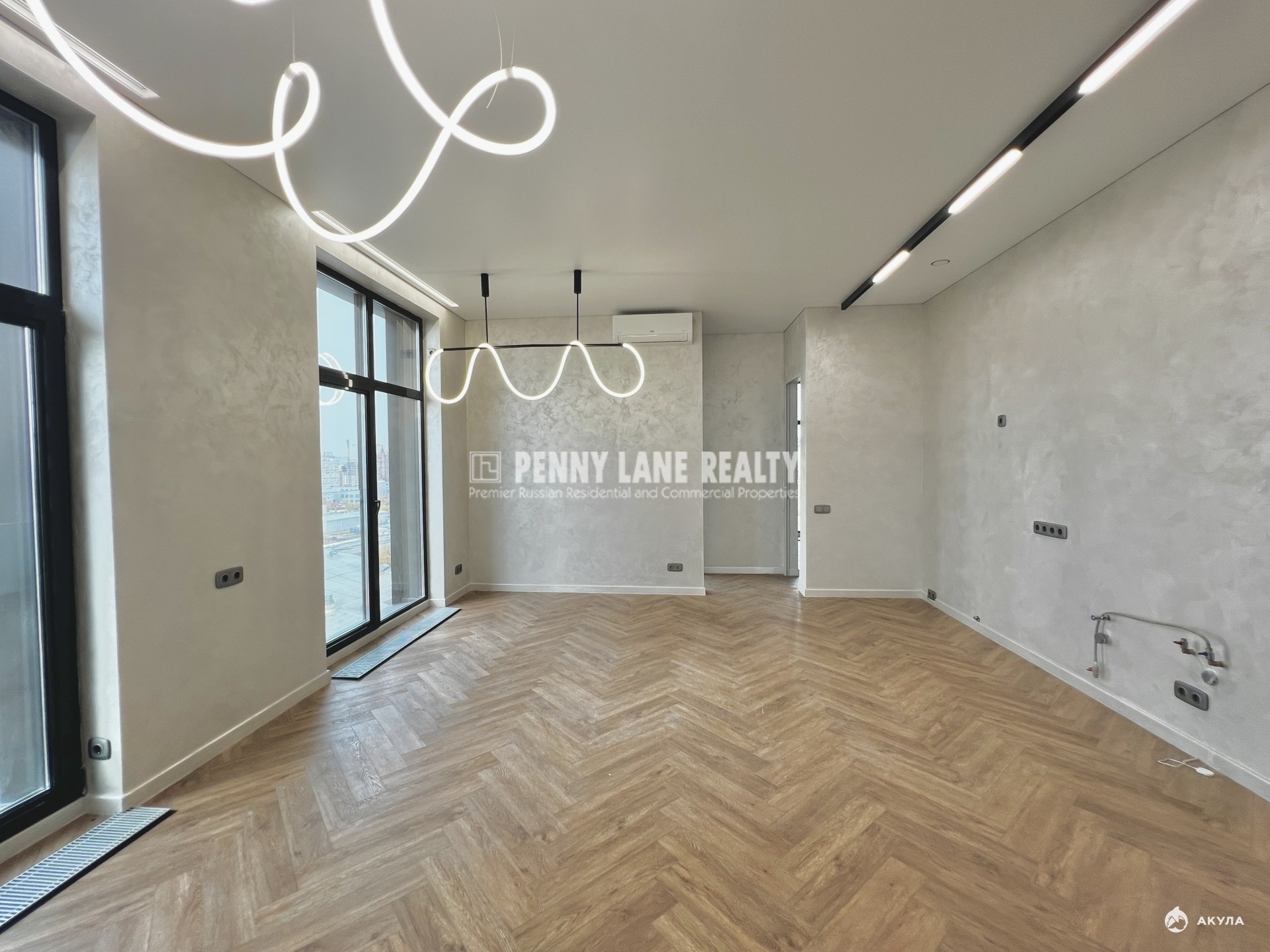 Планировка: Кухня гостинная, спальня, кабинет, санузел. Выполнен качественный современный ремонт с использованием дорогостоящих материалов, двухуровневый теплый свет, стены - художественная покраска. Везде была осуществлена шумоизоляция: пол, потолок и стены. Потолки 3.3 метра, остекление в пол, стеклопакеты тройные, и что примечательно, на всех окнах одна створка открывается полностью на 180", за которой толстое стекло в метр высотой для вашей безопасности.