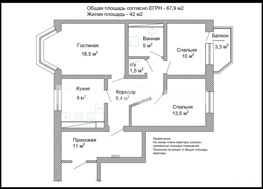 - 68 м²