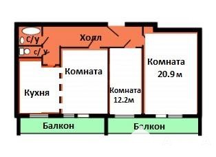Просторная кухня, большие светлые комнаты, вместительный холл, 2 балкона!
