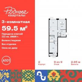 Трехкомнатная квартира с европланировкой в ЖК "Родные кварталы" на 9 этаже. Квартира без отделки, полностью готова к чистовой отделке и дальнейшему ремонту. Общая площадь: 59.5 кв.м., жилая: 31.7 кв.м., общая площадь гостиной-столовой с кухонной зоной: 18.2 кв.м. Европланировка,...