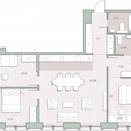 Трехкомнатная квартира бизнес-класса с европланировкой в ЖК "Дзен-кварталы" на 18 этаже. Квартира без отделки, после выдачи ключей можно делать ремонт. Общая площадь: 74.9 кв.м., жилая: 45.6 кв.м., суммарная площадь гостиной-столовой с кухонной зоной: 28.8 кв.м. Европейская...