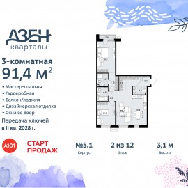 3-комн. квартира бизнес-класса с европланировкой и отделкой в ЖК "Дзен-кварталы" на 2 этаже. Общая площадь: 91.4 кв.м., жилая: 46.8 кв.м., общая площадь гостиной-столовой с кухонной зоной: 30.5 кв.м. Европланировка, кухня и гостиная объединены в одно просторное помещение. Квартира -...