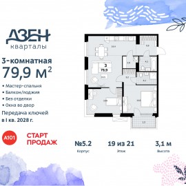Продается 3-комн. квартира бизнес-класса с европланировкой в ЖК "Дзен-кварталы" на 19 этаже. Квартира без отделки, полностью готова к ремонту. Общая площадь: 79.9 кв.м., жилая: 44 кв.м., общая площадь гостиной-столовой с кухонной зоной: 30.9 кв.м. Европейская планировка, кухня-гостиная...
