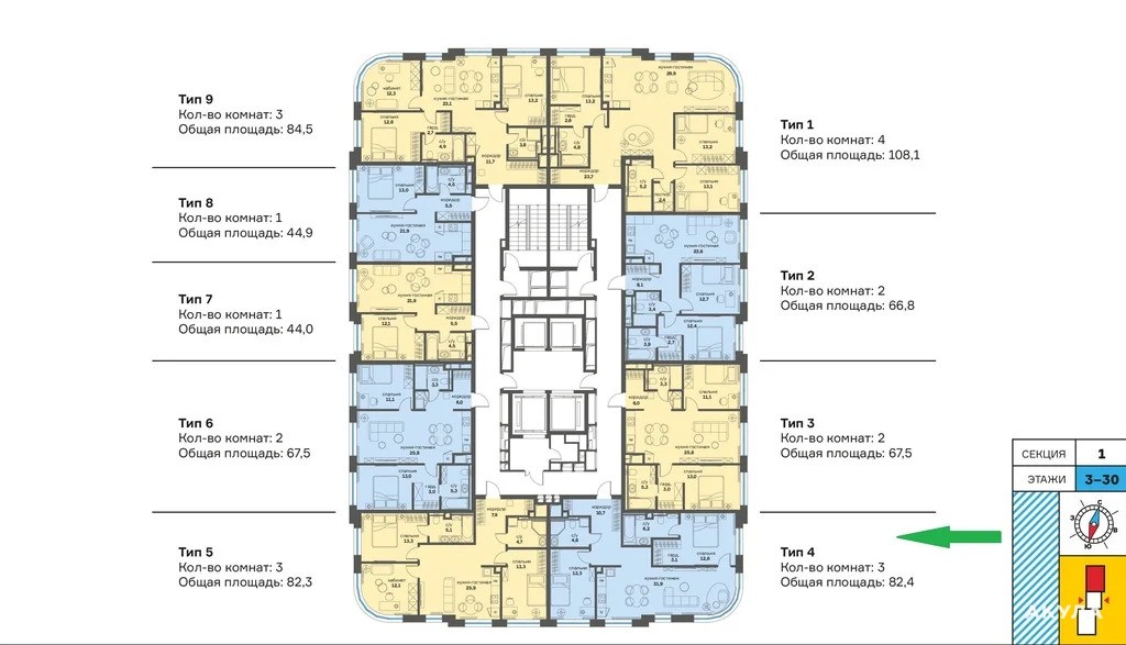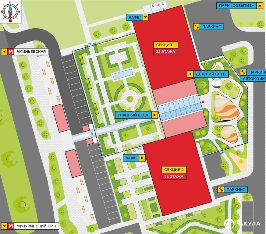 - адрес: Москва, ЮЗАО, район Раменки, ЖК Событие - 5, секция 1;