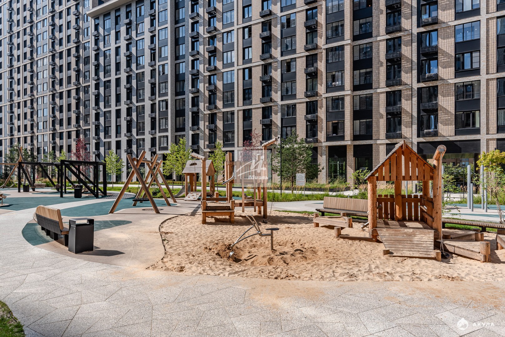 - В пешей доступности — школы, детские сады, спорткомплексы и парки.