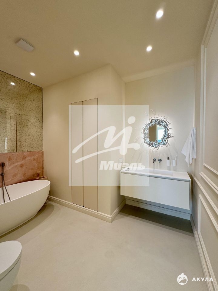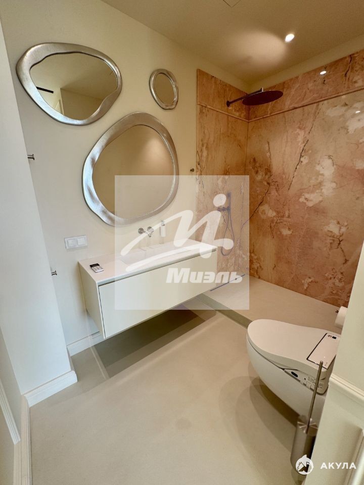 в каждом санузле два умных унитаза с функцией подогрева , подсветки, регулировки температуры гигиенического душа. Отделаны санузлы слэбами из натурального мрамора без швов.