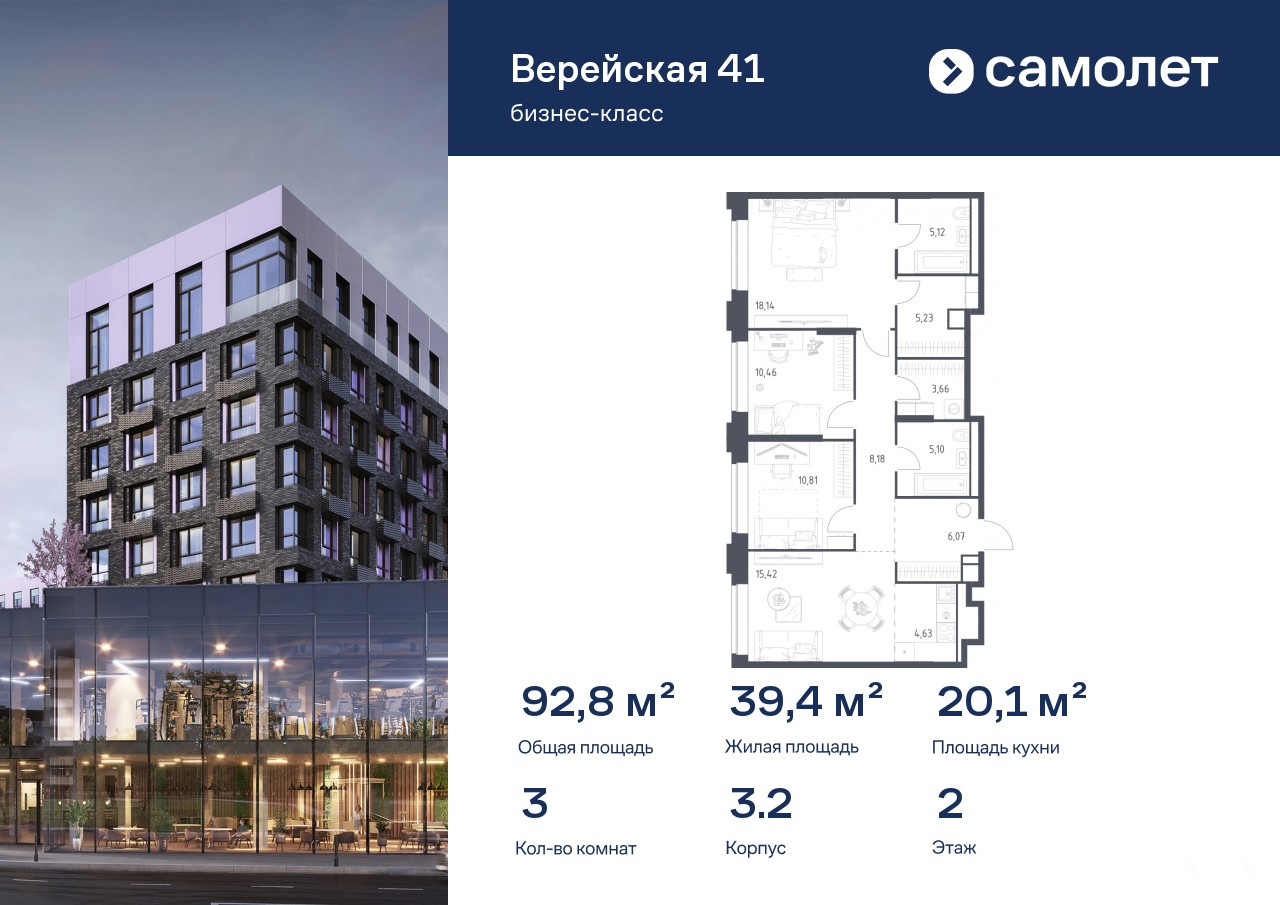 Строим кварталы для жизни с заботой о будущем. Предлагается 3-комнатная квартира бизнес-класса 92, 82 кв.м в корпусе 3.2 на 2 этаже, в «Верейская 41»