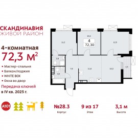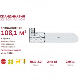 4-комн. квартира с европланировкой от застройщика в ЖК "Скандинавия" на 12 этаже. Квартира без отделки, после оформления собственности можно делать ремонт. Общая площадь: 66.1 кв.м., жилая: 43.3 кв.м., общая площадь гостиной-столовой с кухонной зоной: 16.7 кв.м. Европейская планировка,...