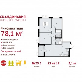 Продается 4-комн. квартира бизнес-класса с европланировкой и отделкой в ЖК "Скандинавия" на 13 этаже. Общая площадь: 78.1 кв.м., жилая: 47 кв.м., суммарная площадь гостиной-столовой с кухонной зоной: 20.6 кв.м. Европланировка, площадь комнат позволяет разместить в них все необходимое,...