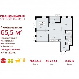 4-комн. квартира с европланировкой в ЖК "Скандинавия" на 10 этаже. Квартира без отделки, после получения ключей можно делать ремонт. Общая площадь: 65.5 кв.м., жилая: 43.2 кв.м., общая площадь гостиной-столовой с кухонной зоной: 16.5 кв.м. Европланировка, за счет большой площади...