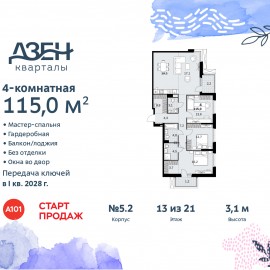 Продается просторная 4-х комнатная квартира на 20-м этаже 30-ти этажного дома в ЖК СЕВЕРНЫЙ ПАРК. Большая площадь квартиры 136, 9 кв.м дает возможность разместить больше функциональных зон: кухня-гостиная; 3 (три) изолированные спальни, одна из них со своим санузлом; зимний сад...