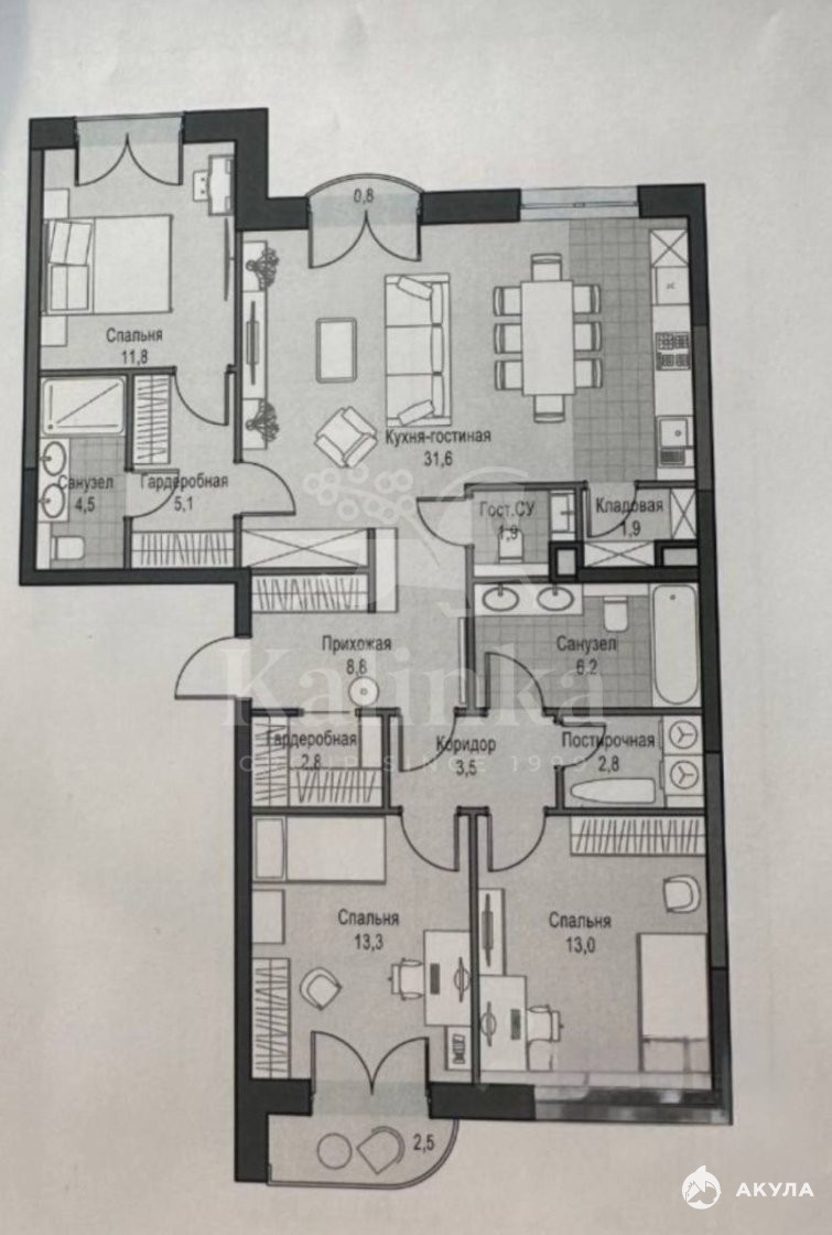 - Распашная квартира: 3 спальни, гостиная+ кухня, гардеробные, 3 с/у, свободная планировка.