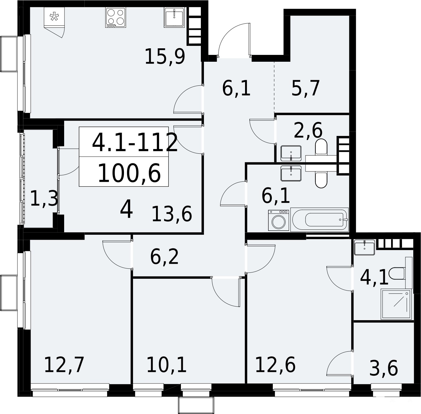 - 15.9 м²