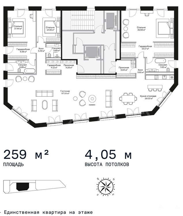 Описание: Предлагаем приобрести коллекционный пентхаус с видом на Храм Христа Спасителя 259 м2. Сдача - 3 квартал 2026 года. Панорамные виды на парк Храм Христа Спасителя, Музеон, Водоотводный канал, ГЭС-2; Окна на четыре стороны света; Просторная гостиная с дровяным камином; Три спальни с санузлами и гардеробными; Два входа в квартиру: основной и сервисный; Терраса с видом на воду, потолки 4 м. Особенность проекта авторские фасады жилых домов из клинкерного красного кирпича с уникальными авторскими орнаментами, произведённого в Германии по специальному заказу. Благодаря тактичной ревитализации индустриальный лофтовый шарм места сохранится, а обновление максимально бережно фасады новых клубных домов острова сохраняют кирпич узнаваемого оттенка. Историческая атмосфера сохранится, а жизнь, выходя на другой уровень, приобретёт ещё большую плавность под стать речной панораме, которой вы будете любоваться ежедневно. Квартира с отделкой white box. В отделке интерьеров клубного пространства используются натуральные материалы и нейтральная цветовая палитра. Коллекция дизайнерских и инженерных решений впечатляет вниманием к деталям и тонкостью исполнения. Расположение: В центре Москвы есть остров, окна домов которого смотрят на золотую милю и храм Христа Спасителя, а прогулка по набережной приведёт вас на борт собственной яхты, ландшафт дополняют клубные резиденции с благоустроенным парком и собственным причалом, набережной, фонтаном и садами, Кремль - 800 метров.