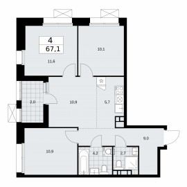 4-комн. квартира с европланировкой в ЖК "Бунинские кварталы" на 18 этаже. Квартира без отделки, после оформления собственности можно делать ремонт. Общая площадь: 67.1 кв.м., жилая: 43.5 кв.м., общая площадь гостиной-столовой с кухонной зоной: 16.6 кв.м. Европейская планировка, за счет...