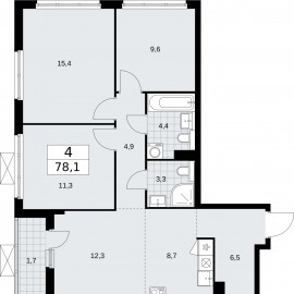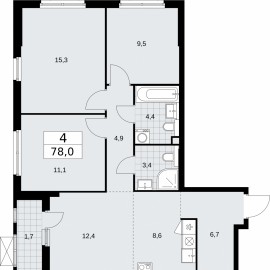4-комн. квартира с европланировкой и отделкой в ЖК "Бунинские кварталы" на 16 этаже. Общая площадь: 78.8 кв.м., жилая: 47.1 кв.м., общая площадь гостиной-столовой с кухонной зоной: 20.5 кв.м. Европейская планировка, за счет большой площади кухни-гостиной квартира выглядит просторной и...