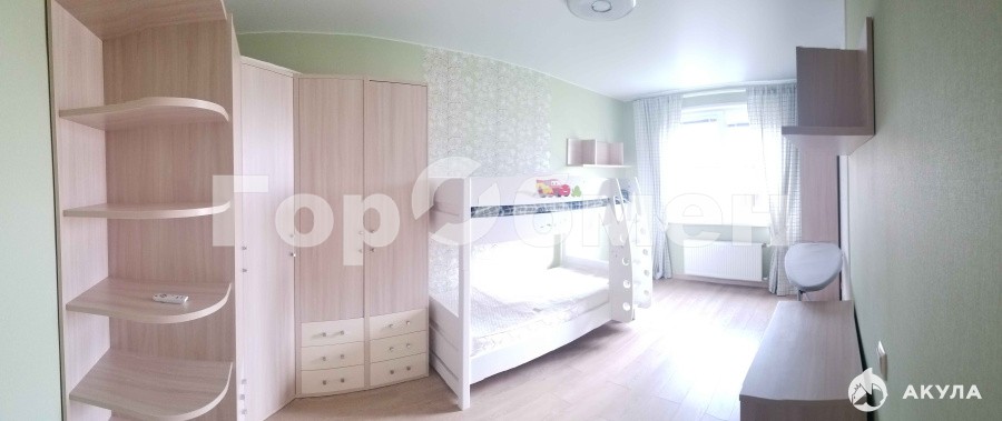 Большим преимуществом будет двуспальная детская кровать (двухуровневая), кабинет с огромной гардеробной и очень удобная кровать с ортопедическим матрацем.