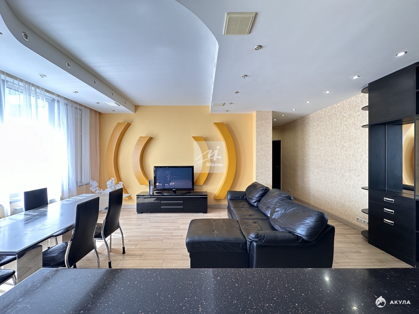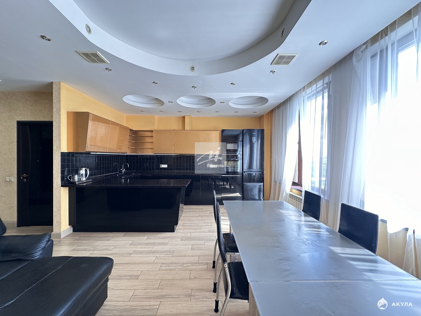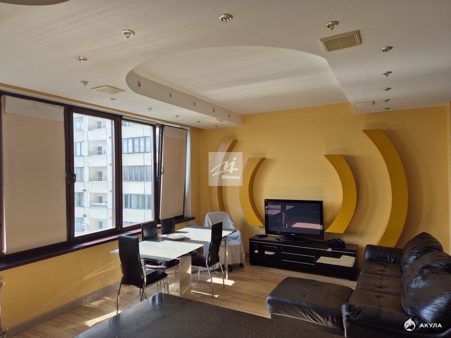 В квартире высокие потолки 3 (три) м, отличная шумоизоляция, толстые стены.