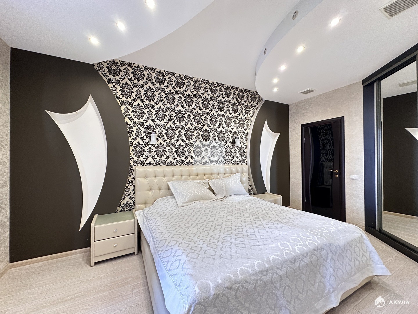 Большая площадь квартиры 136, 9 кв.м дает возможность разместить больше функциональных зон: кухня-гостиная; 3 (три) изолированные спальни, одна из них со своим санузлом; зимний сад (отапливаемое помещение с остеклением с двух сторон), который можно считать полноценной 5-й (пятой) комнатой и можно обустроить под кабинет с комфортным рабочим местом, под игровую комнату, а также под тренажёрный зал или комнату для отдыха; 3 (три) санузла; просторный коридор и гардеробные зоны.