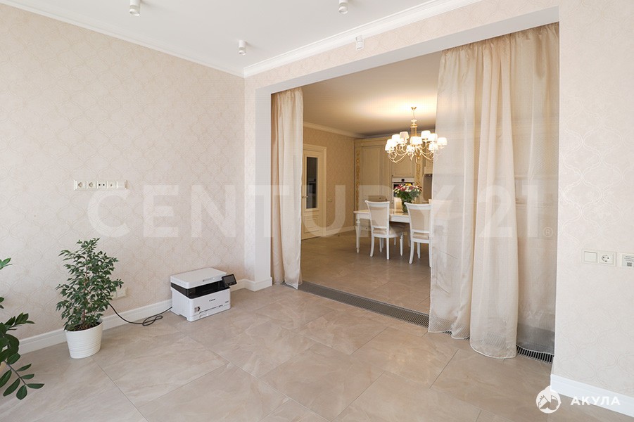 Планировкой предусмотрено: просторная кухня-гостиная 27 кв.м. + кабинет 15 кв.м, мастер-спальня, детская комната, спальня с лоджией, ванная комната, гостевой с.у с душевой кабиной, гардеробная, холл.