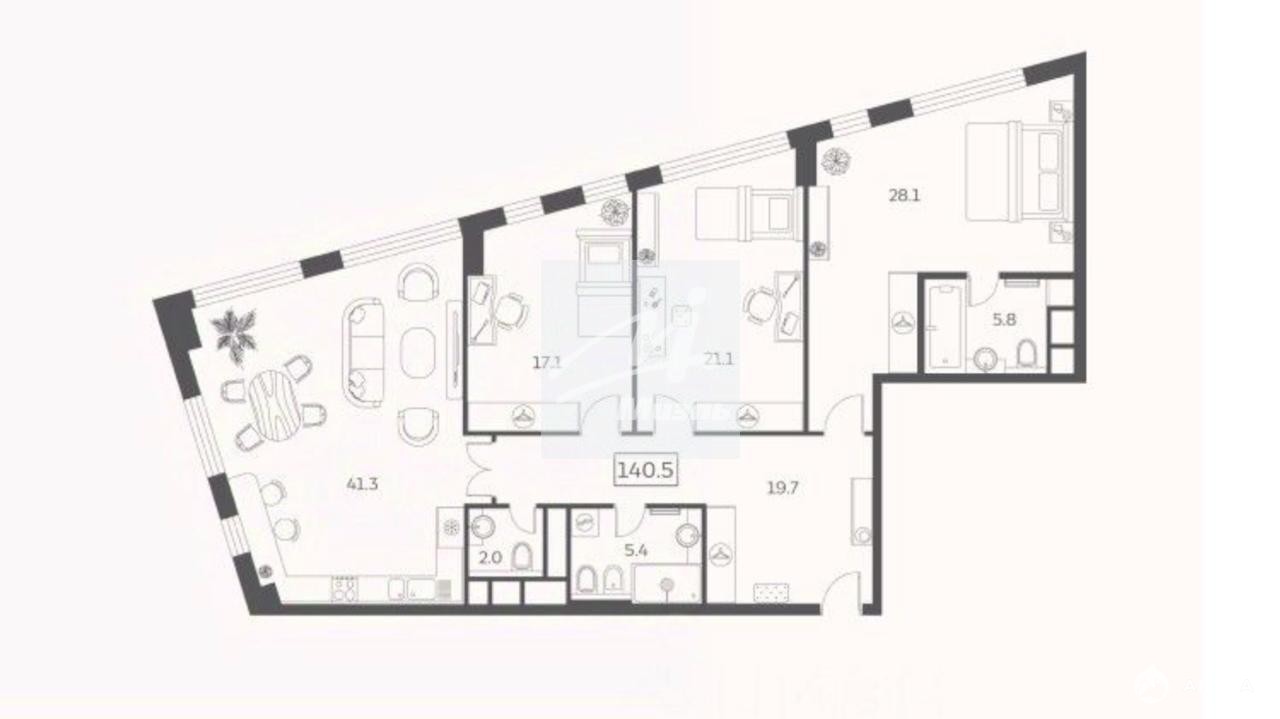 Работаем от собственника. Предлагается квартира в жилом комплексе бизнес-класса "Sky House" на 8 этаже, площадью 140 кв. м., свободная планировка с возможностью разместить 3 спальни и гостиную.