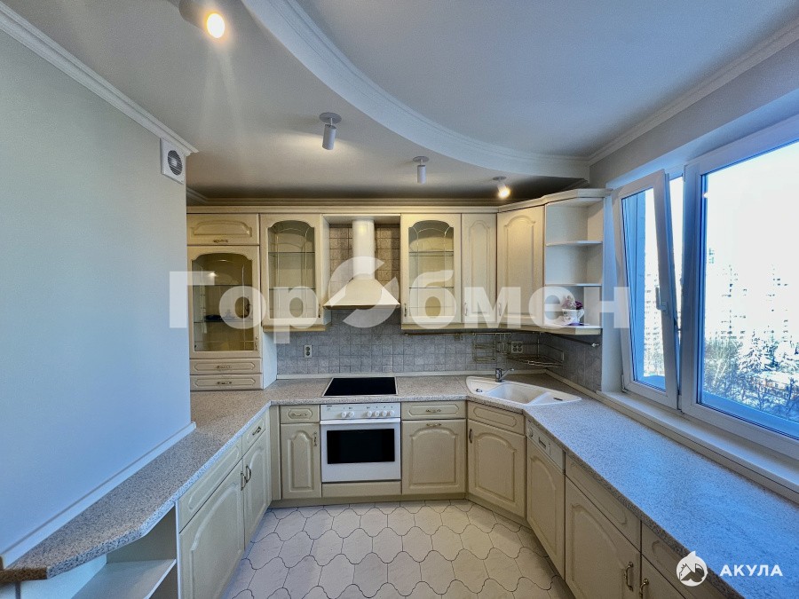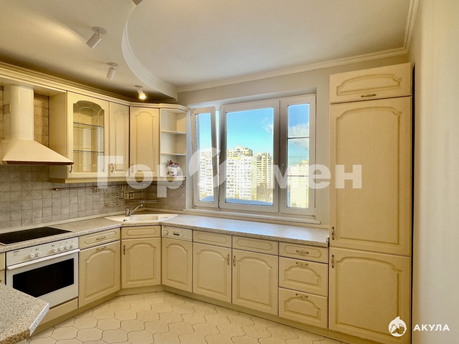Продаётся просторная четырехкомнатная квартира (объединение двух квартир) площадью 112 квадратных метров на 15 этаже 17 этажного панельного дома, построенного в 1996 году, расположенного по адресу: Москва, Новочерёмушкинская улица, 50. Жилая площадь составляет 72 квадратных метра, кухня-столовая – 19.4 квадратных метра.
