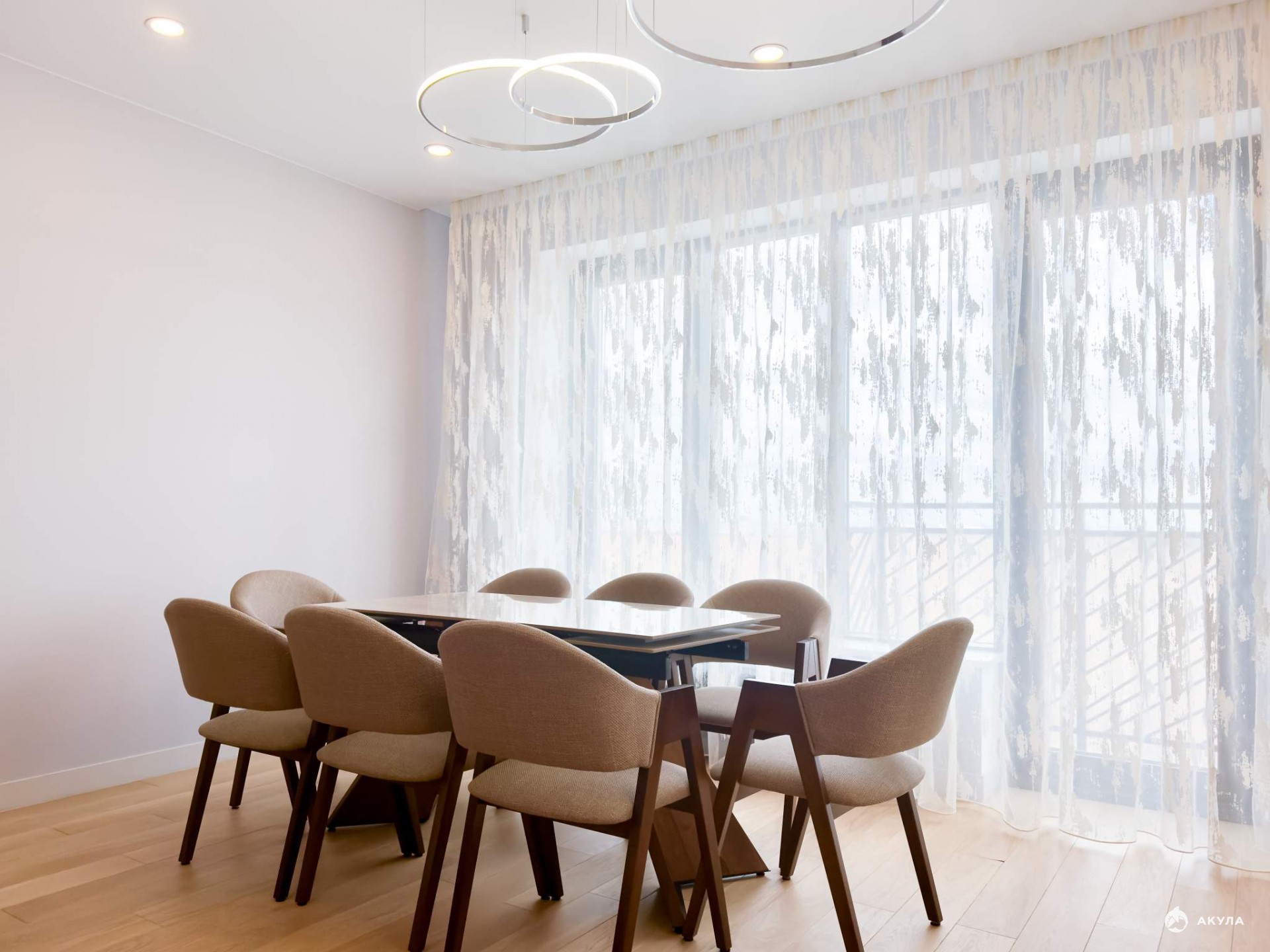 Потолки высотой 3 метра дарят ощущение свободы и объема, а панорамные окна открывают живописный вид на зелень и город.