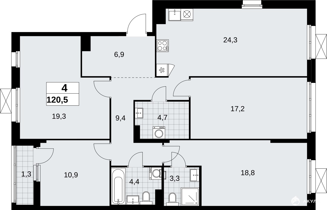 - 24.3 м²