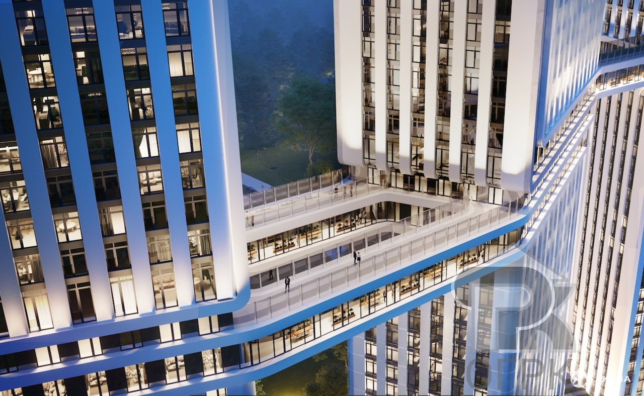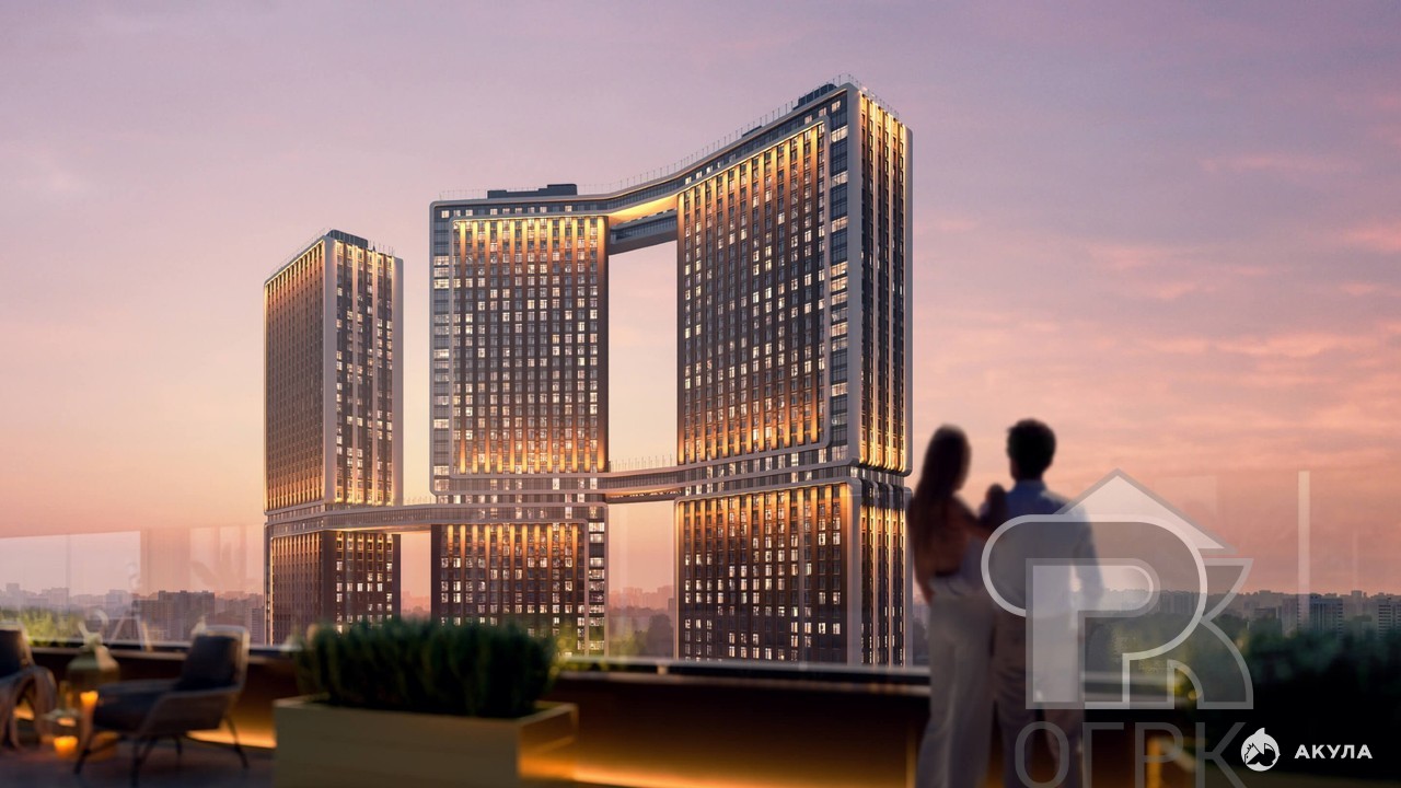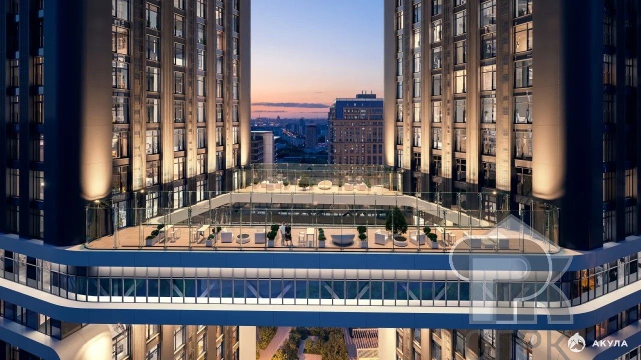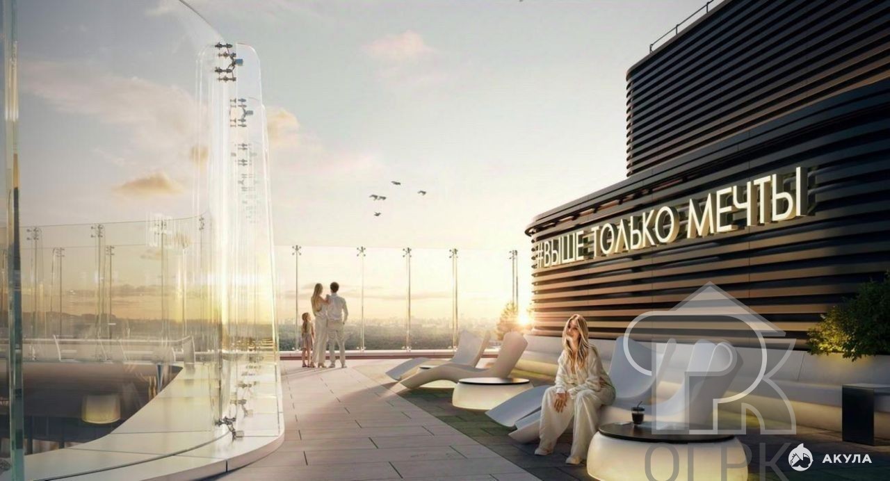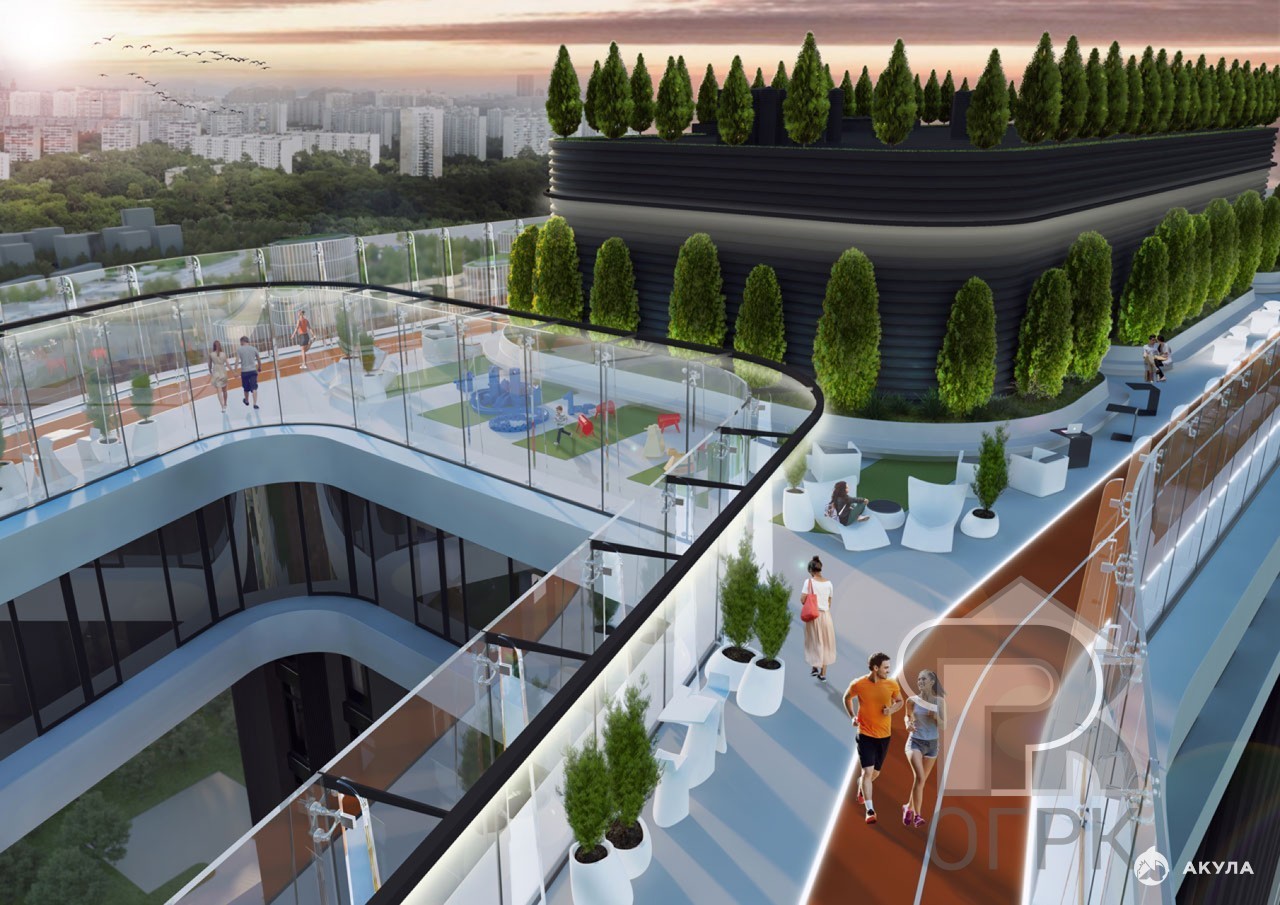 Крыша с обзорной площадкой, беговой дорожкой и зонами отдыха, коворкинги. Спортзал, детские развлекательные комнаты, инфраструктура прямо в комплексе.