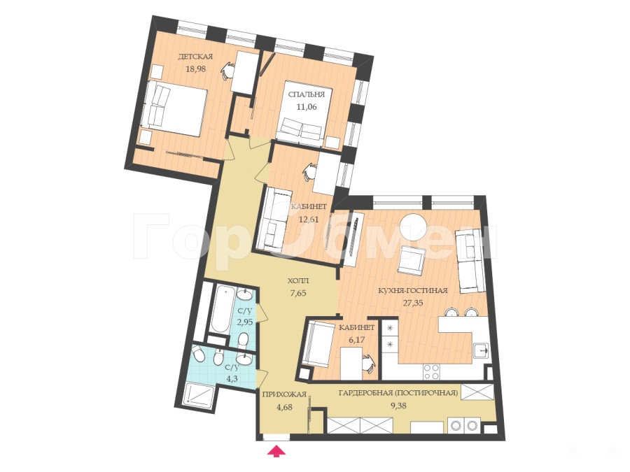 - 27.35 м²
