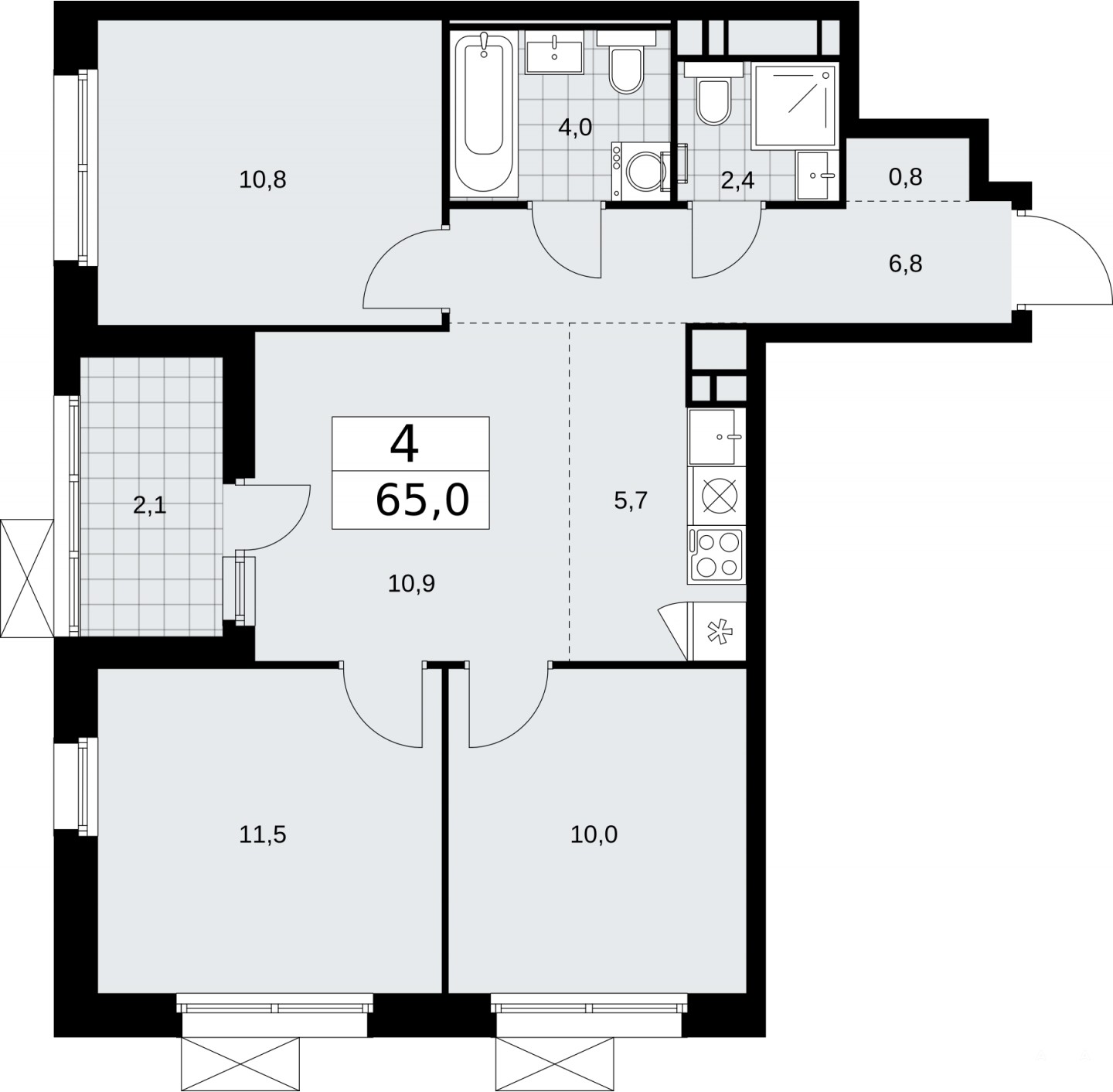 4-комн. квартира с европланировкой и отделкой в ЖК "Скандинавия" на 13 этаже. Общая площадь: 65 кв.м., жилая: 43.2 кв.м., суммарная площадь гостиной-столовой с кухонной зоной: 16.6 кв.м. Европланировка, кухня и гостиная объединены в одно просторное помещение. Квартира угловая, окна oбecпeчивaют paвнoмepнoe ocвeщeниe в тeчeниe дня. В квартире одна лоджия, два совмещенных санузла. Высота потолков 3.1 м.