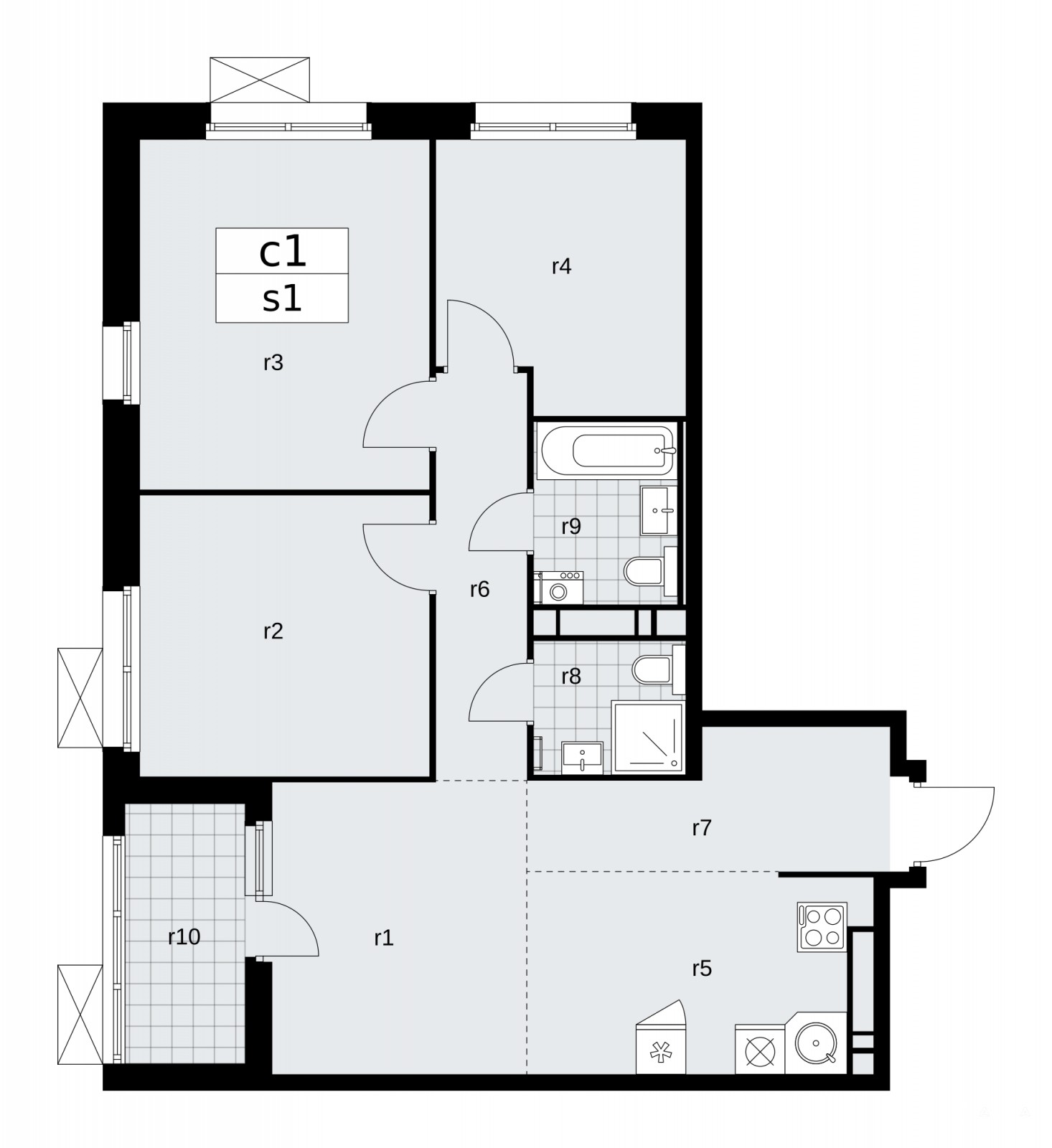 4-комн. квартира с европланировкой и отделкой в ЖК "Скандинавия" на 16 этаже. Общая площадь: 77.9 кв.м., жилая: 47 кв.м., суммарная площадь гостиной-столовой с кухонной зоной: 20.5 кв.м. Европланировка, за счет большой площади кухни-гостиной квартира выглядит просторной и очень удобна для жизни. Угловая квартира, очень светлая, естественная вентиляция при открытии окон. В квартире одна лоджия, два совмещенных санузла. Высота потолков 3.1 м.