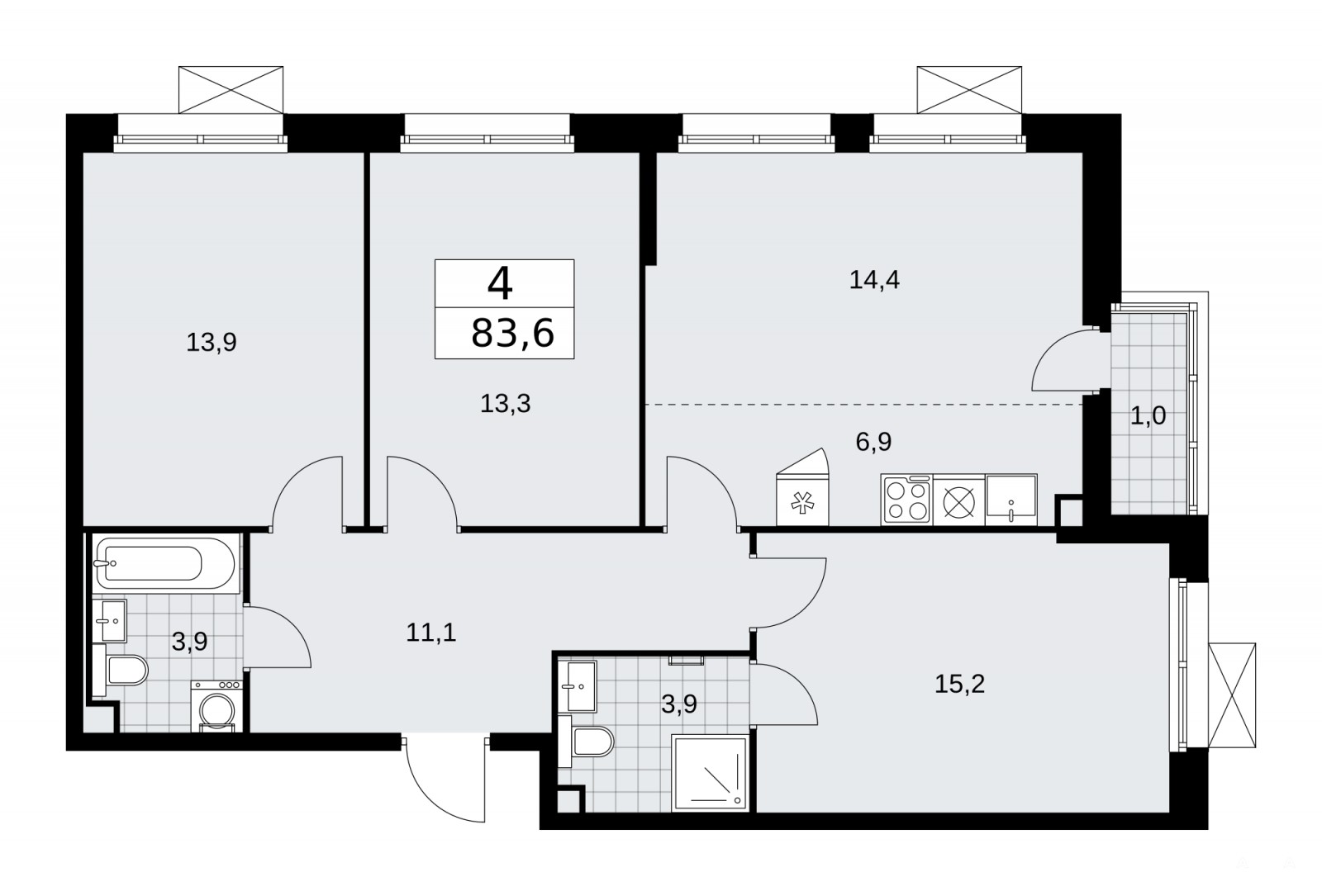 Продается 4-комн. квартира с европланировкой в ЖК "Скандинавия" на 2 этаже. Квартира без отделки, новый собственник может сделать ремонт по индивидуальному проекту. Общая площадь: 83.6 кв.м., жилая: 56.8 кв.м., общая площадь гостиной-столовой с кухонной зоной: 21.3 кв.м. Европланировка, зона гостиной комнаты объединена с кухней. Квартира угловая, очень светлая, естественная вентиляция при открытии окон. В квартире одна лоджия, два совмещенных санузла. Высота потолков 3.1 м.