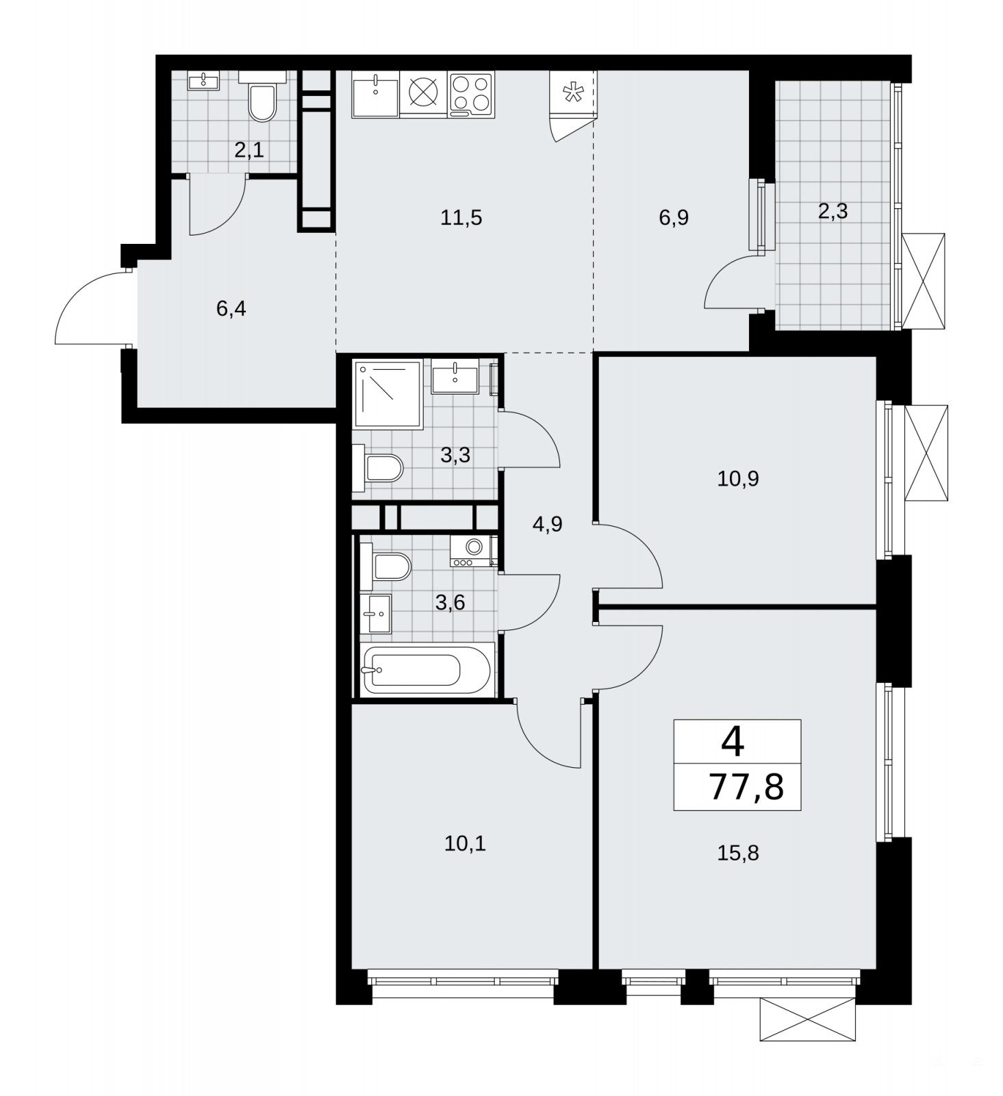 4-комн. квартира с европланировкой в ЖК "Скандинавия" на 16 этаже. Квартира без отделки, после оформления собственности можно делать ремонт. Общая площадь: 77.8 кв.м., жилая: 43.7 кв.м., суммарная площадь гостиной-столовой с кухонной зоной: 18.4 кв.м. Европейская планировка, площадь комнат позволяет разместить в них все необходимое, а в просторной кухне-гостиной удобно как готовить, так и отдыхать. Квартира угловая, идеально подойдет любителям тишины и панорамных видов. В квартире одна лоджия, два совмещенных и один раздельный санузел. Высота потолков 3.1 м.