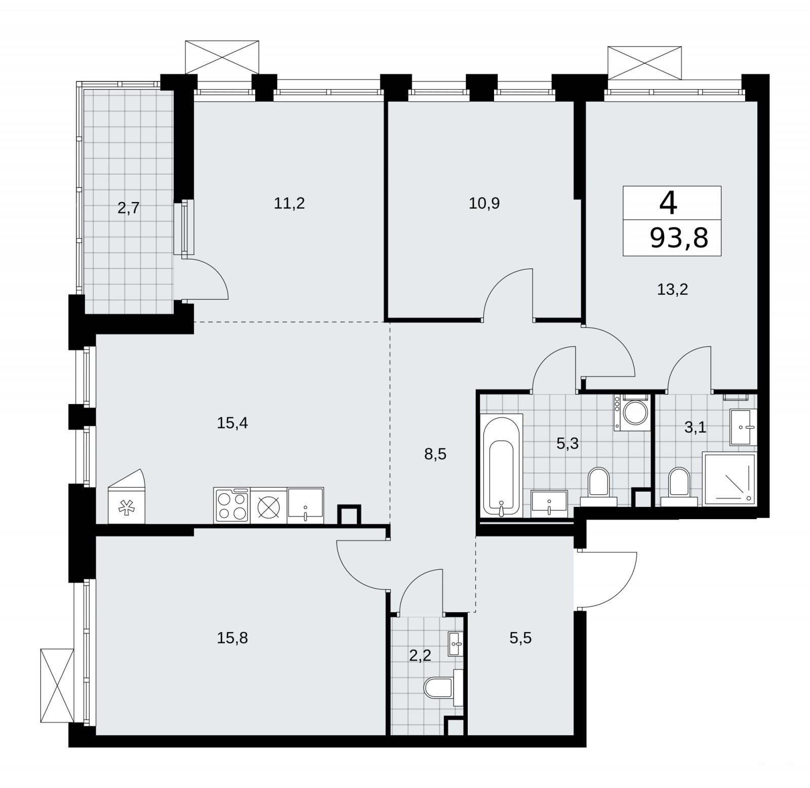 4-комн. квартира с европланировкой в ЖК "Скандинавия" на 2 этаже. Квартира без отделки, полностью готова к ремонту. Общая площадь: 93.8 кв.м., жилая: 51.1 кв.м., суммарная площадь гостиной-столовой с кухонной зоной: 26.6 кв.м. Европланировка, кухня и гостиная объединены в одно просторное помещение. Квартира угловая, идеально подойдет любителям тишины и панорамных видов. В квартире одна лоджия, два совмещенных санузла. Высота потолков 3.1 м.