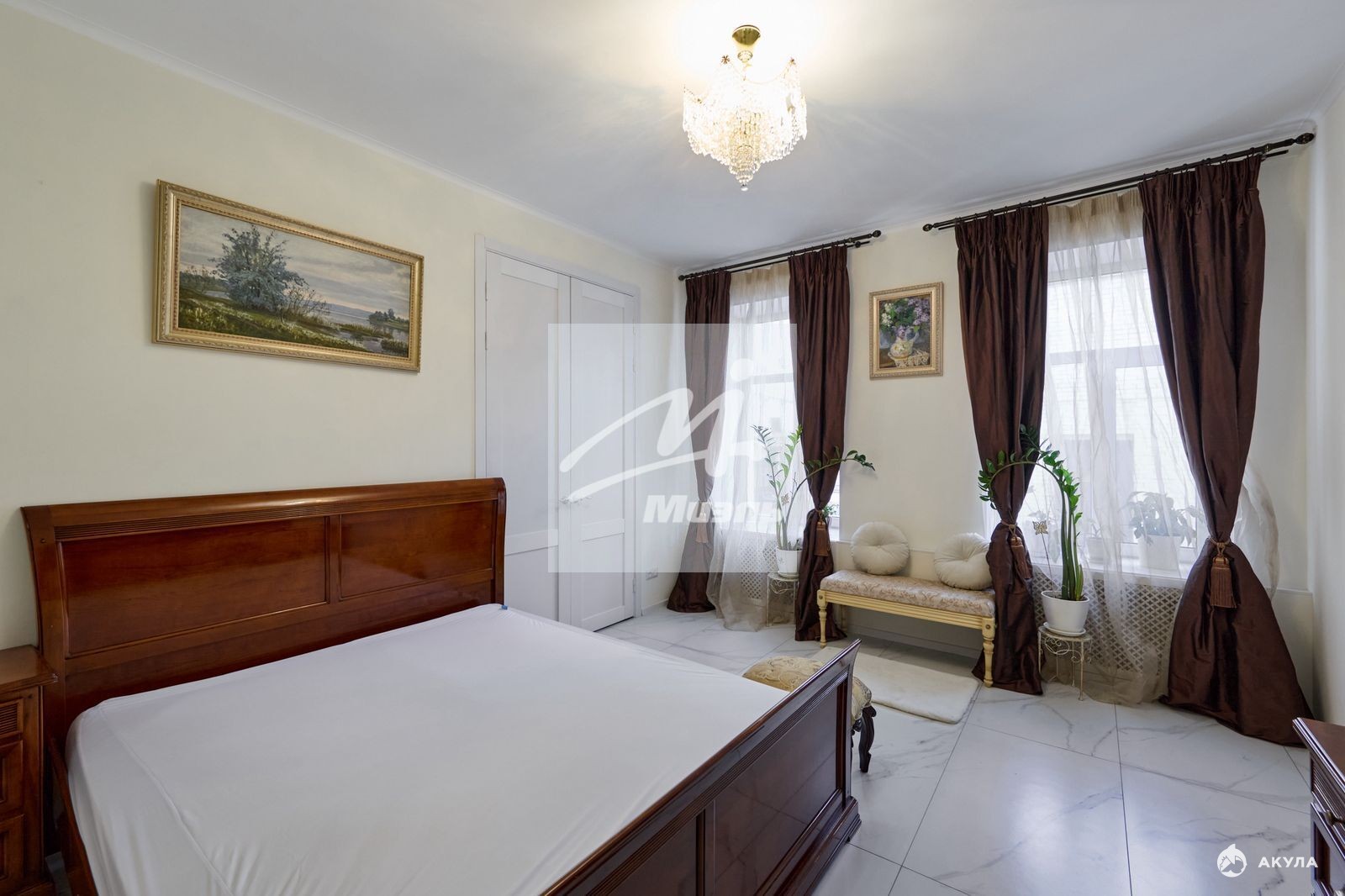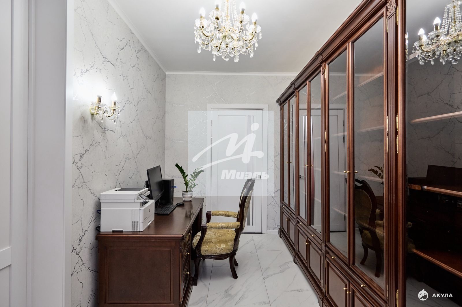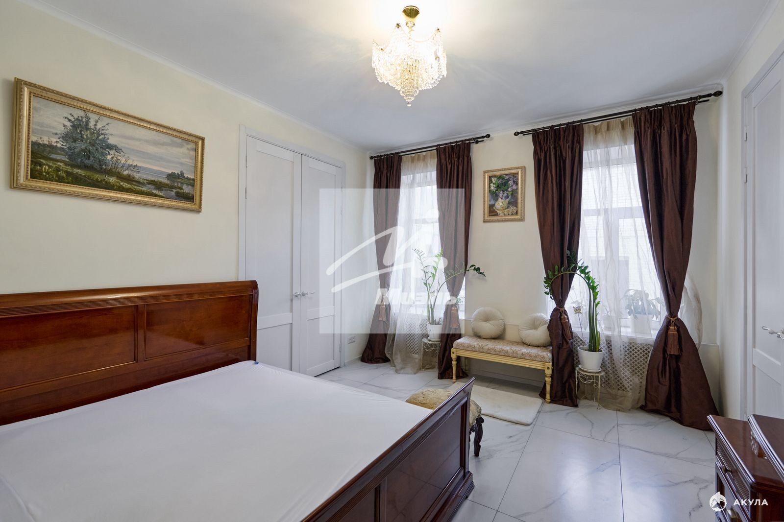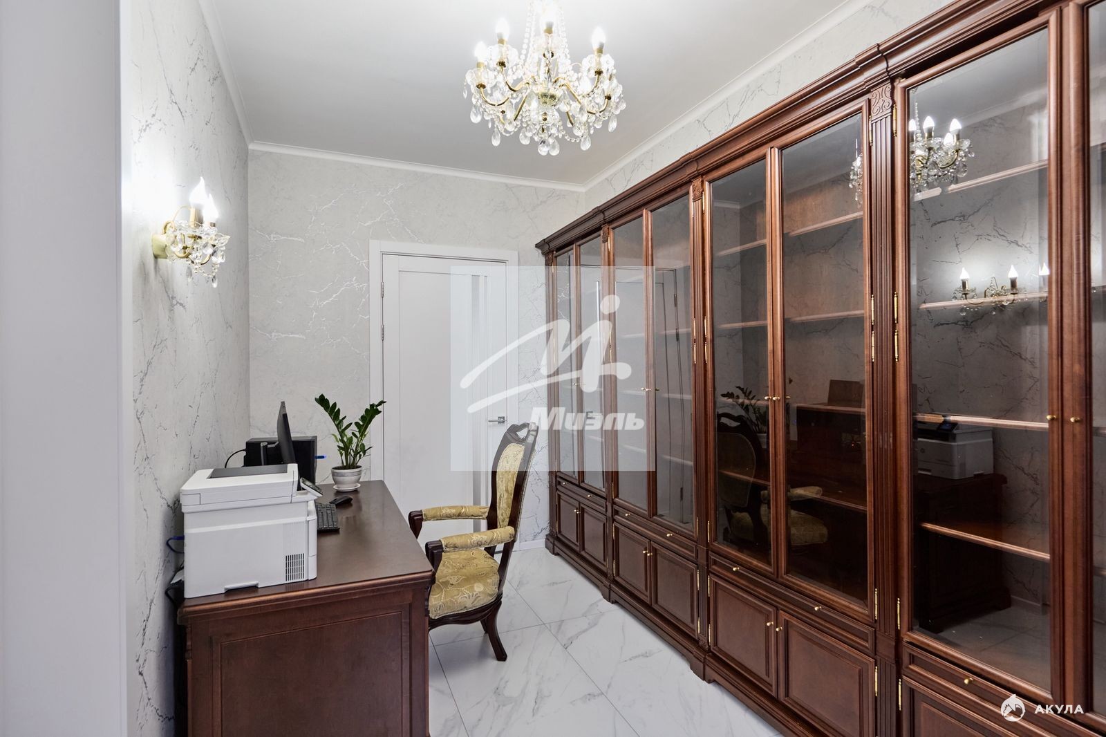 Общая площадь составляет 96, 6 кв. м, из которых 54, 4 кв. м — жилая площадь. Четыре изолированные комнаты (площадью 10, 5 + 11, 5 + 17, 6 + 14, 8 кв. м) предоставляют множество возможностей для комфортного размещения семьи. Высота потолков 3, 6 м придаёт пространству особый колорит. Квартира полностью меблирована и готова для проживания новых владельцев. Просторная спальня и удобный кабинет оформлены в классическом стиле. Кухня-столовая, площадью 18, 7 кв.м идеально сочетает современную и классическую отделку. В новый кухонный гарнитур интегрирована встроенная газовая панель, духовка, вытяжка, холодильник. Санузел разделен раздвижной дверью, которая выделяет приватную зону, в которой расположена ванна. Дизайнерский ремонт выполнен с учётом всех современных тенденций.