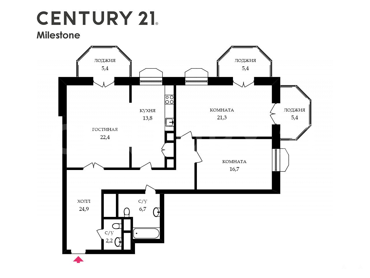 • Три балкона с возможностью организовать лаунж, кабинет или зимний сад