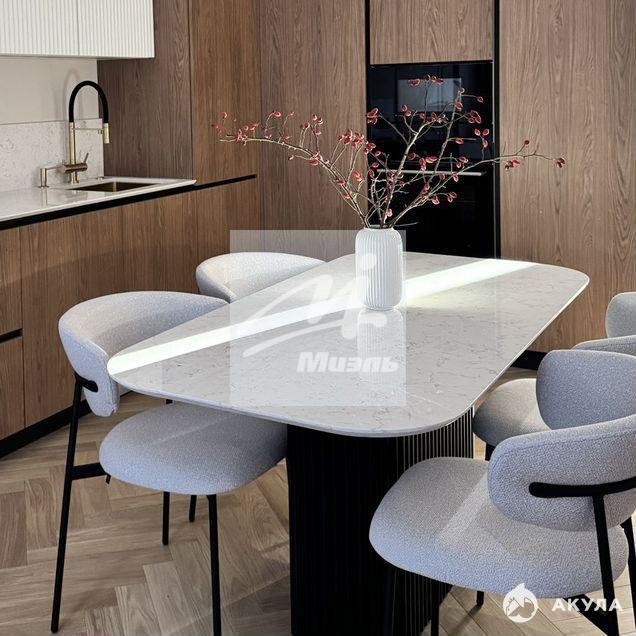 В отделке использованы только самые дорогие и экологичные материалы: инженерная доска, массивные двери, потолок из гипсокартона, столешницы/фартук/кухонный стол из натурального кварца, сантехника Bogeme, каменная ванна.