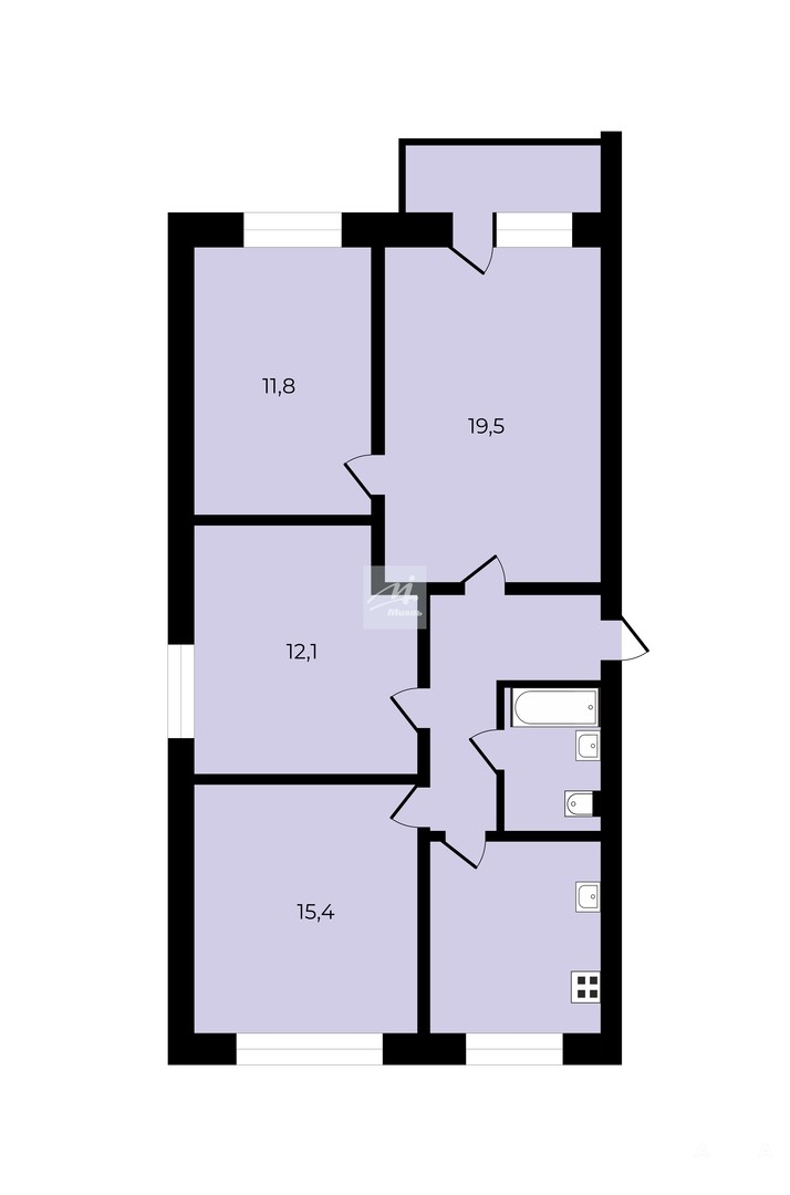 (комнаты 15, 4/12, 1/11, 8кв.м.) Подходит для семей с детьми, подростками или для организации кабинета.