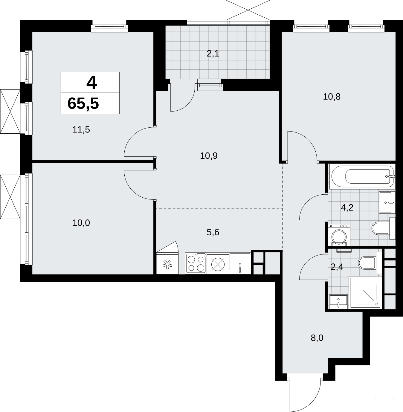 Просторная 4-комн. квартира с европланировкой в ЖК "Скандинавия" на 12 этаже. Квартира без отделки, полностью готова к ремонту. Общая площадь: 65.5 кв.м., жилая: 43.2 кв.м., суммарная площадь гостиной-столовой с кухонной зоной: 16.5 кв.м. Европейская планировка, зона гостиной комнаты объединена с кухней. Угловая квартира, окна oбecпeчивaют paвнoмepнoe ocвeщeниe в тeчeниe дня. В квартире одна лоджия, два совмещенных санузла. Высота потолков 2.95 м.