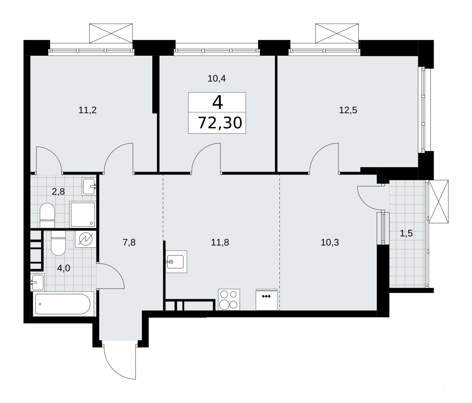 Просторная 4-комн. квартира с европланировкой и отделкой в ЖК "Скандинавия" на 9 этаже. Общая площадь: 72.3 кв.м., жилая: 44.4 кв.м., суммарная площадь гостиной-столовой с кухонной зоной: 22.1 кв.м. Европейская планировка, площадь комнат позволяет разместить в них все необходимое, а в просторной кухне-гостиной удобно как готовить, так и отдыхать. Угловая квартира, очень светлая, естественная вентиляция при открытии окон. В квартире одна лоджия, два совмещенных санузла. Высота потолков 3.1 м.