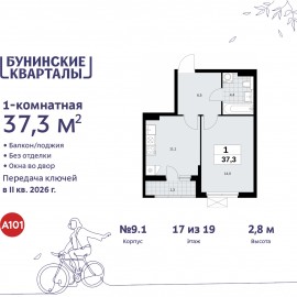 Продается 1-комн. квартира в ЖК "Бунинские кварталы" на 17 этаже. Квартира без отделки, полностью готова к ремонту. Общая площадь: 37.3 кв.м., жилая: 14 кв.м., площадь просторной кухни-столовой: 11.1 кв.м. Все окна выходят на одну сторону. В квартире одна лоджия, один совмещенный...
