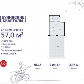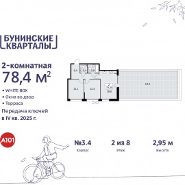 Двухкомнатная квартира с отделкой в ЖК "Бунинские кварталы" на 2 этаже. Общая площадь: 78.5 кв.м. Терраса представляет собой роскошную зону отдыха, где вы на свой вкус можете создать атмосферу комфорта и уюта. Высота потолков 2.95 м. В квартире будет выполнена полная отделка по...